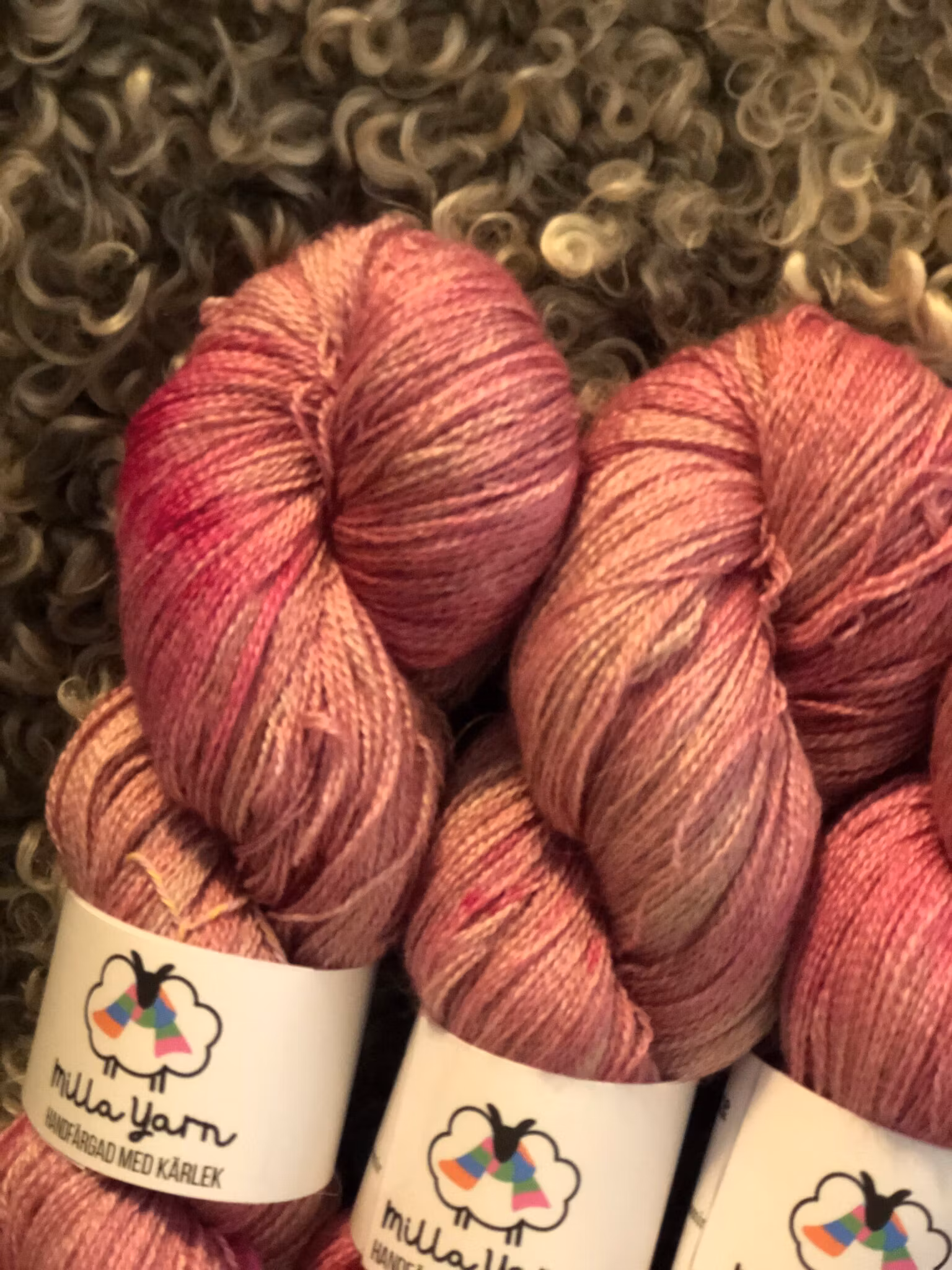Milla Angel Mist Lace......en av våra favoriter! Det här är en underbar blandning av fibrer (baby alpaca, silke och Cashmere) som tillsammans skapar ett garn so