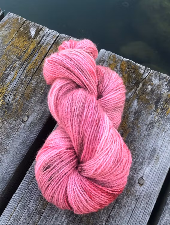 Handfärgat klassiskt 2-trådigt garn (340 m/100 g) i 100% obehandlad härlig svensk ull från Ullcentrum på Öland. Passar jättefint till varma sjalar, mössor, vant
