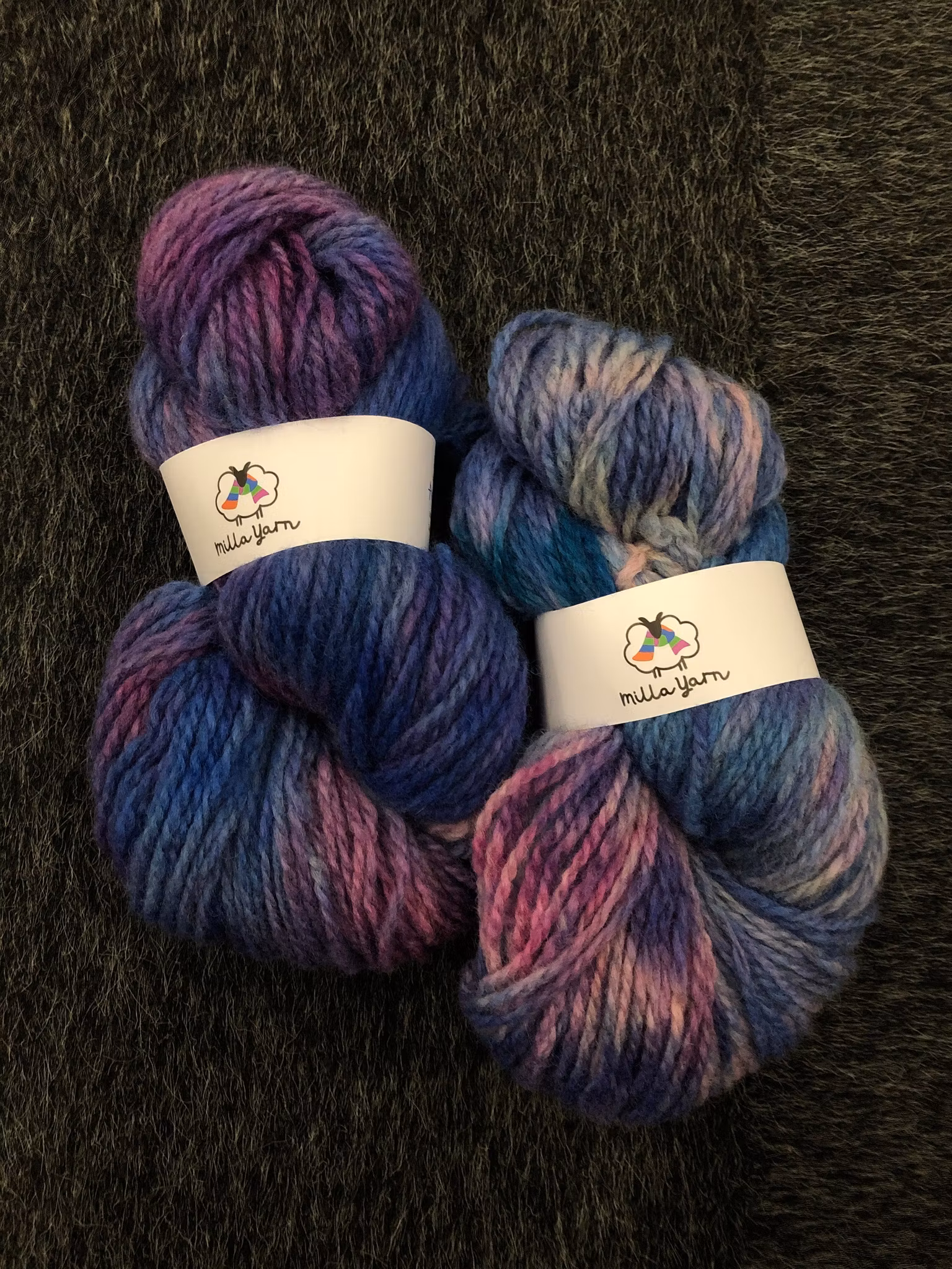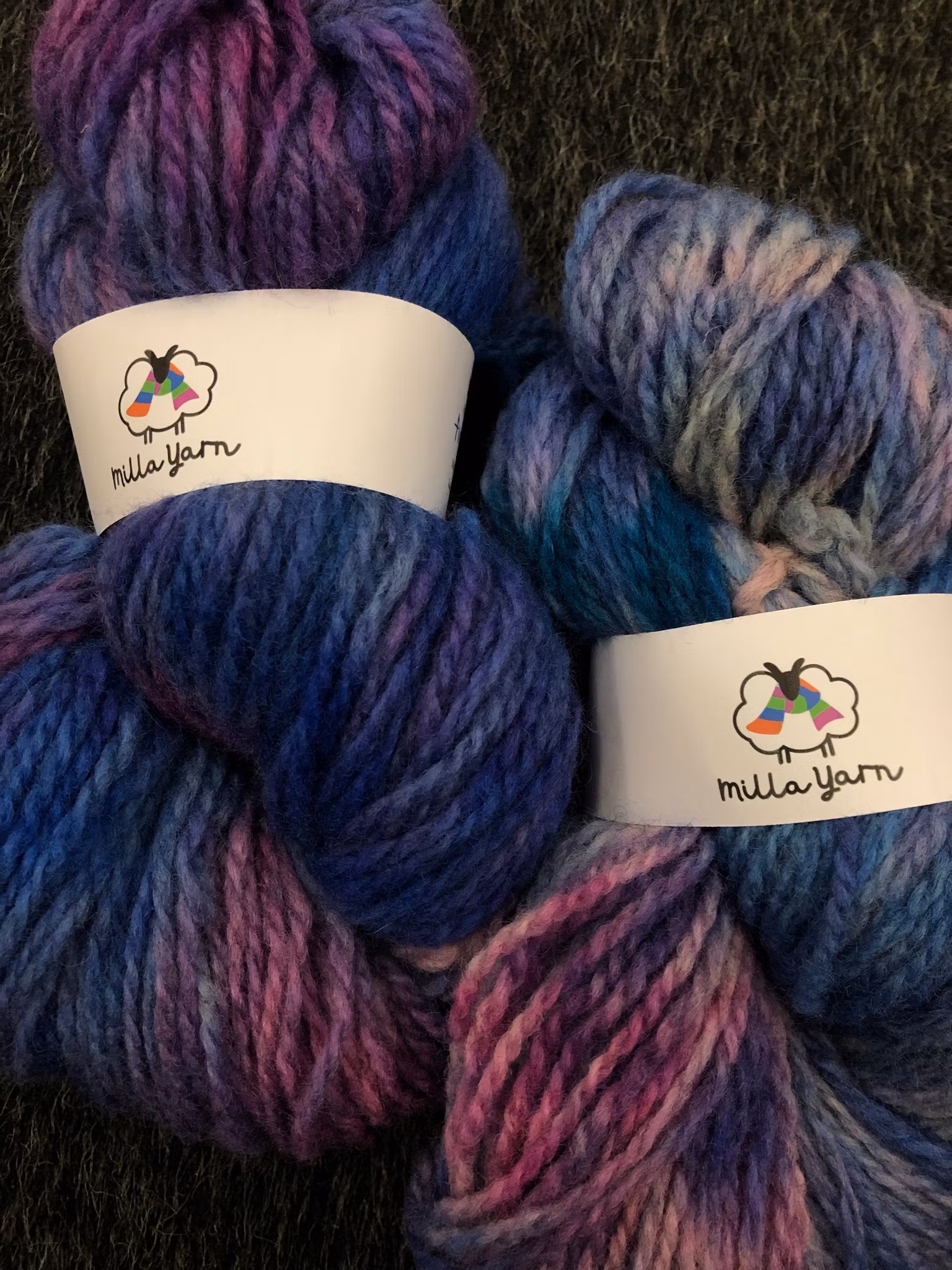 Milla Vams är ett handfärgat mjukt och lätt 2-trådigt kardgarn (Chunky 166 m/100 g) av 100% norsk obehandlad ull från Rauma Ullvarefabrikk. Det värmer ordentligt med sin generösa fluffiga tjocklek och känns inte tungt då det är så lätt och luftigt. Det går fint att tova och passar jättefint till tjockare vantar, mössor, koftor, tröjor mm.