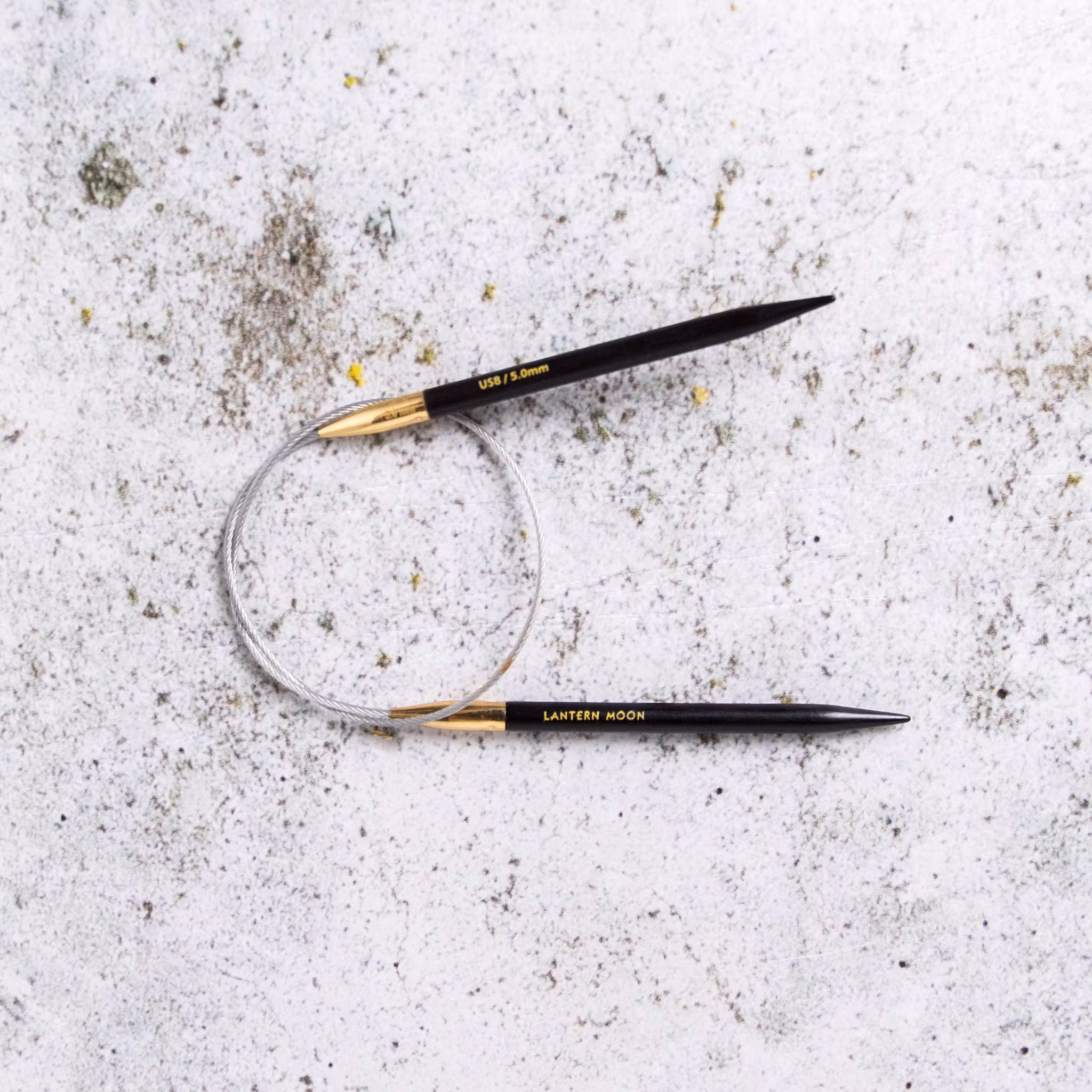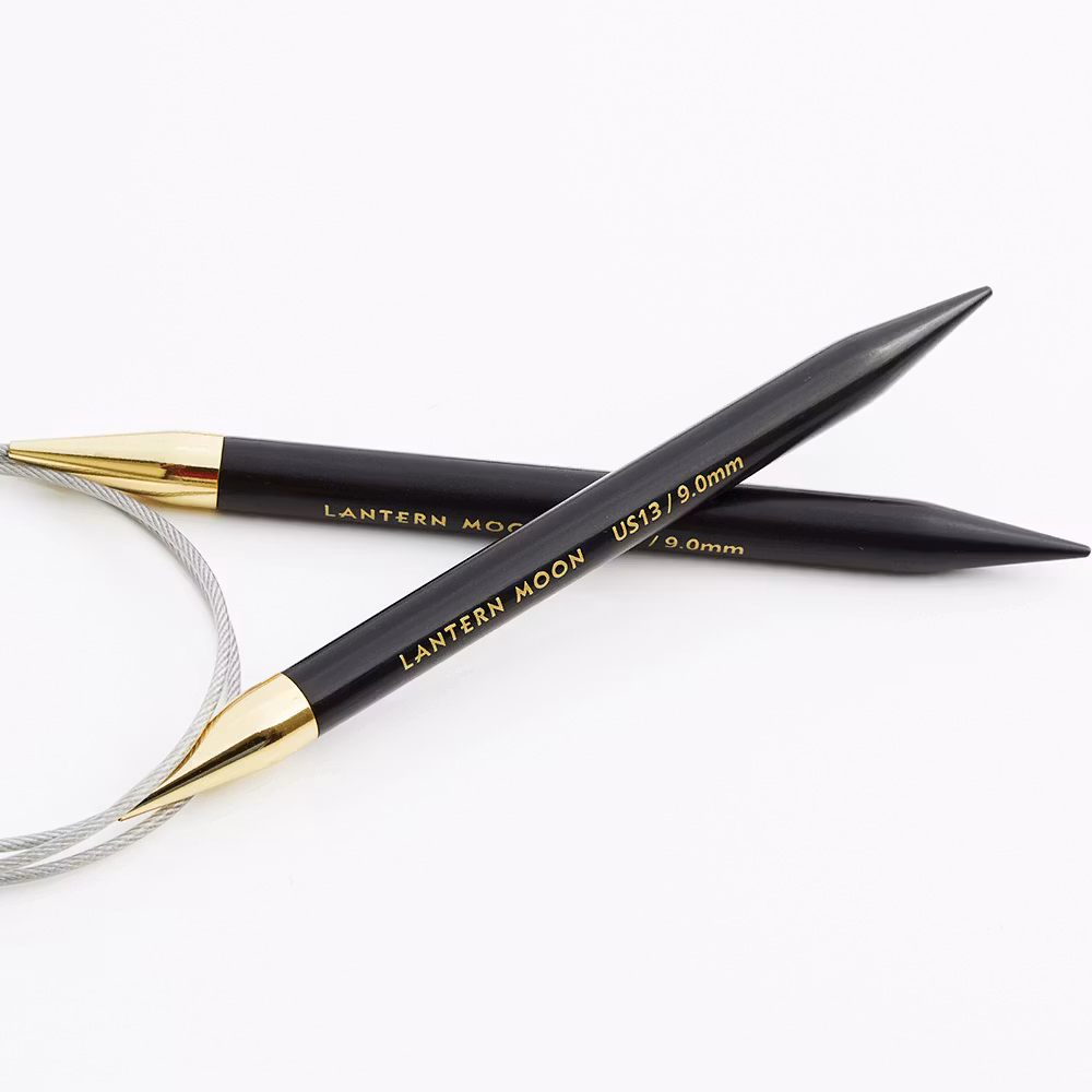 Lantern Moons Destiny rundstickor har tippar tillverkade av ebenholts, ett av världens mest värdefulla träslag. Den silkeslena ytan på dessa lätta rundstickor, tillsammans med mässingskopplingen, garanterar smidig stickning utan trassel. Den mjuka kabeln är smidig och år inte i vägen och krullar sig inte efter förvaring. De omsorgsfullt slipade och formade tipparna fungerar utmärkt med alla typer av garn.